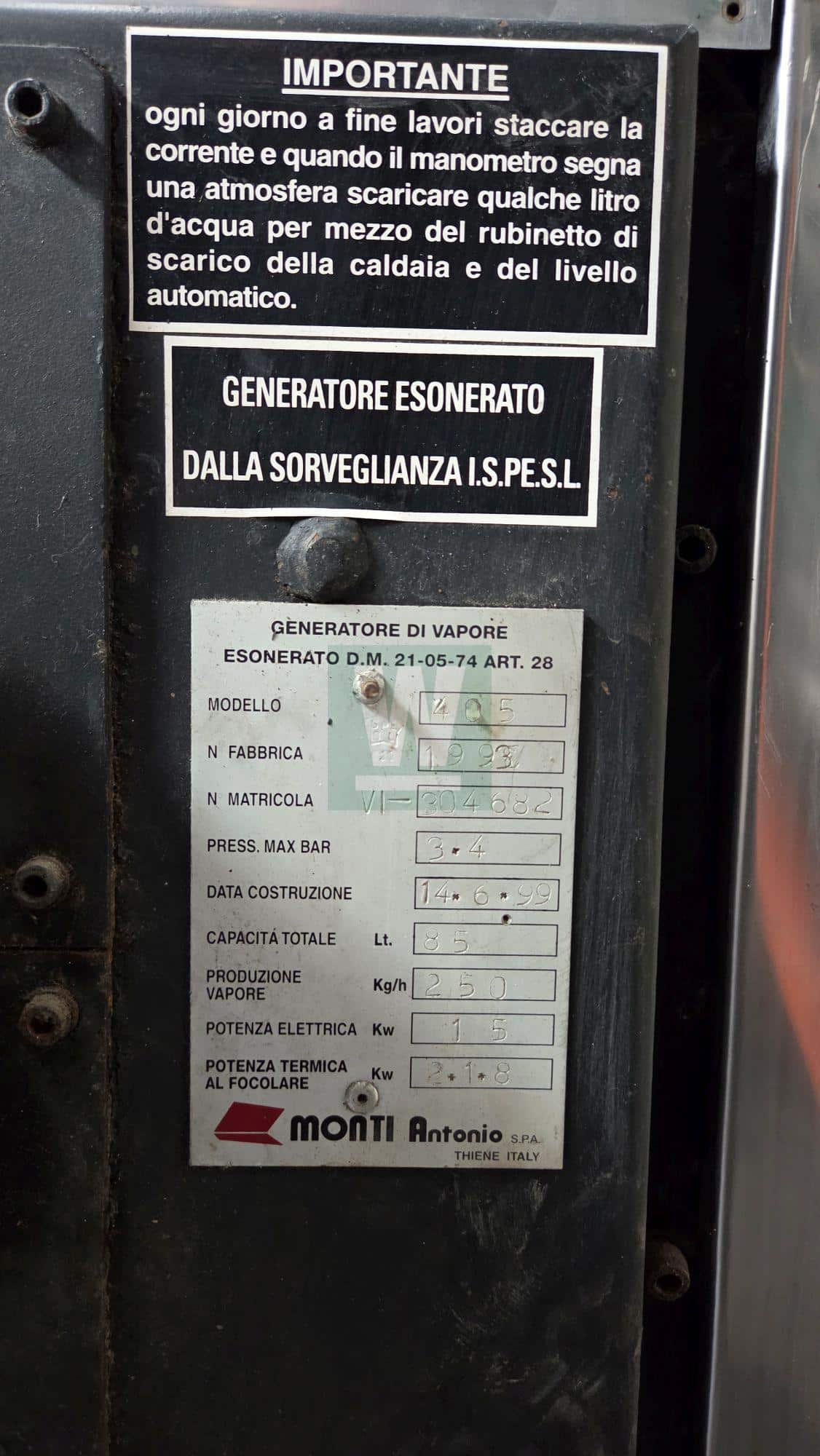 PRODUCCIÓN DE VAPOR: 250 Kg/H